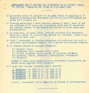 L’amore per qualunque genere musicale e la voglia di coinvolgere sempre più persone, specie i più giovani, è nel DNA della Corale: già oltre 60 anni prima, infatti, si erano organizzati, ad esempio, il £Concorso Maremmano della Canzone” (1945) e il “Concorso del dilettante” (1946).
