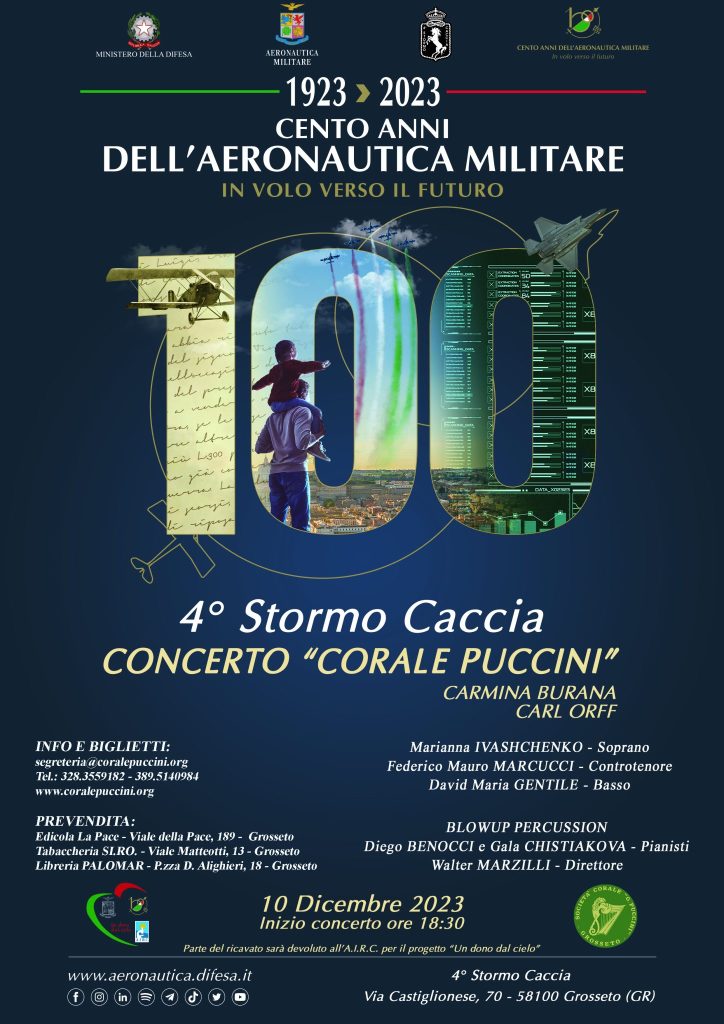 Torniamo ad eseguire i Carmina Burana di Carl Orff, versione originale con due pianoforti e percussioni, a conclusione dell’anno di celebrazioni del centenario dell’Aeronautica Militare.