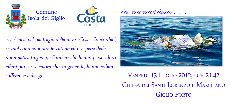 L’evento inizierà alle 21,42 con la cerimonia commemorativa marinara al Porto dell’Isola del Giglio, uno dei gioielli più preziosi delle nostre coste.